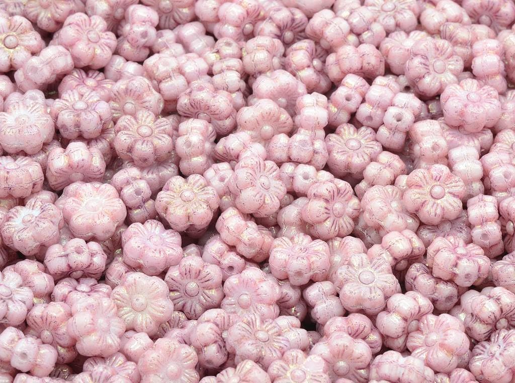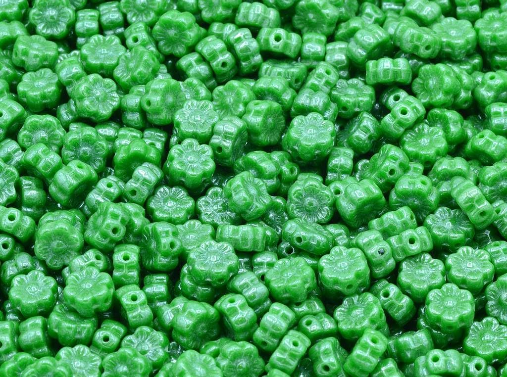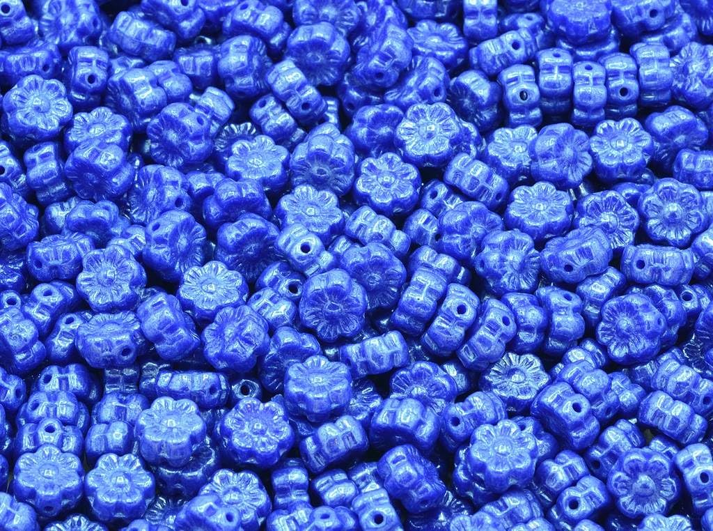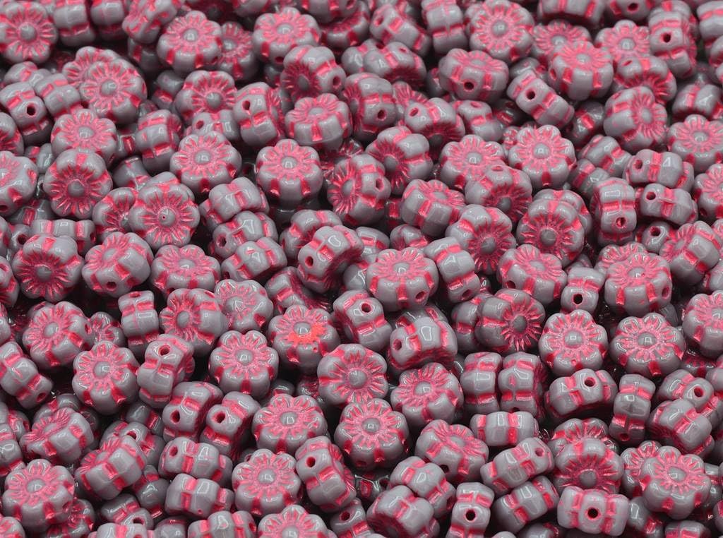 300pcs Flower Beads, Opaque Red Vega Iris (93200-15781), Glass, Czech Republic (0.31 inches)