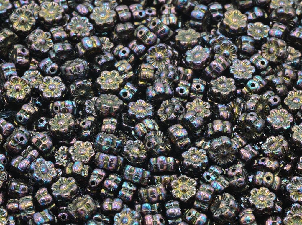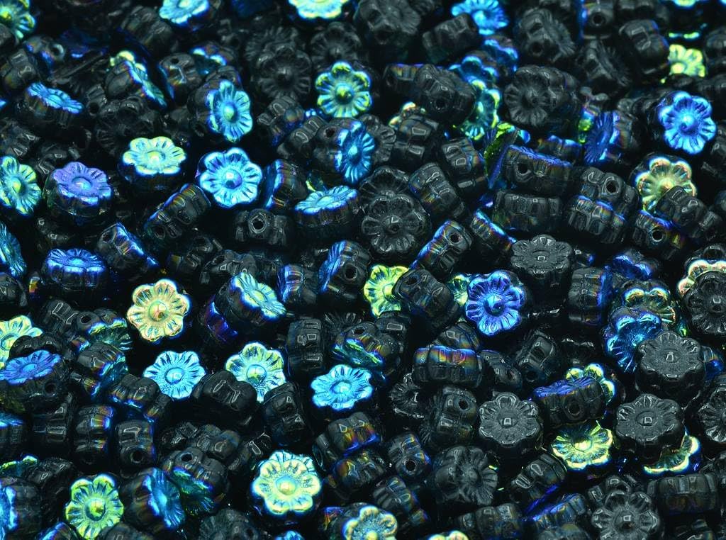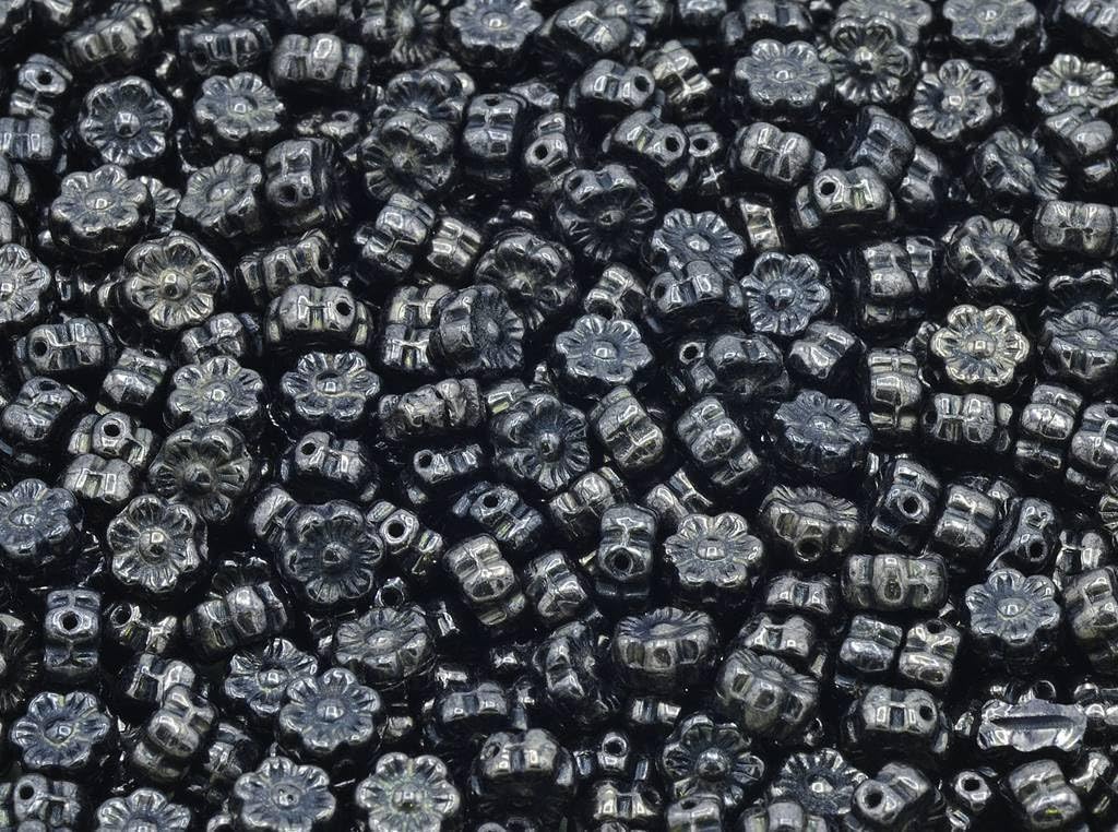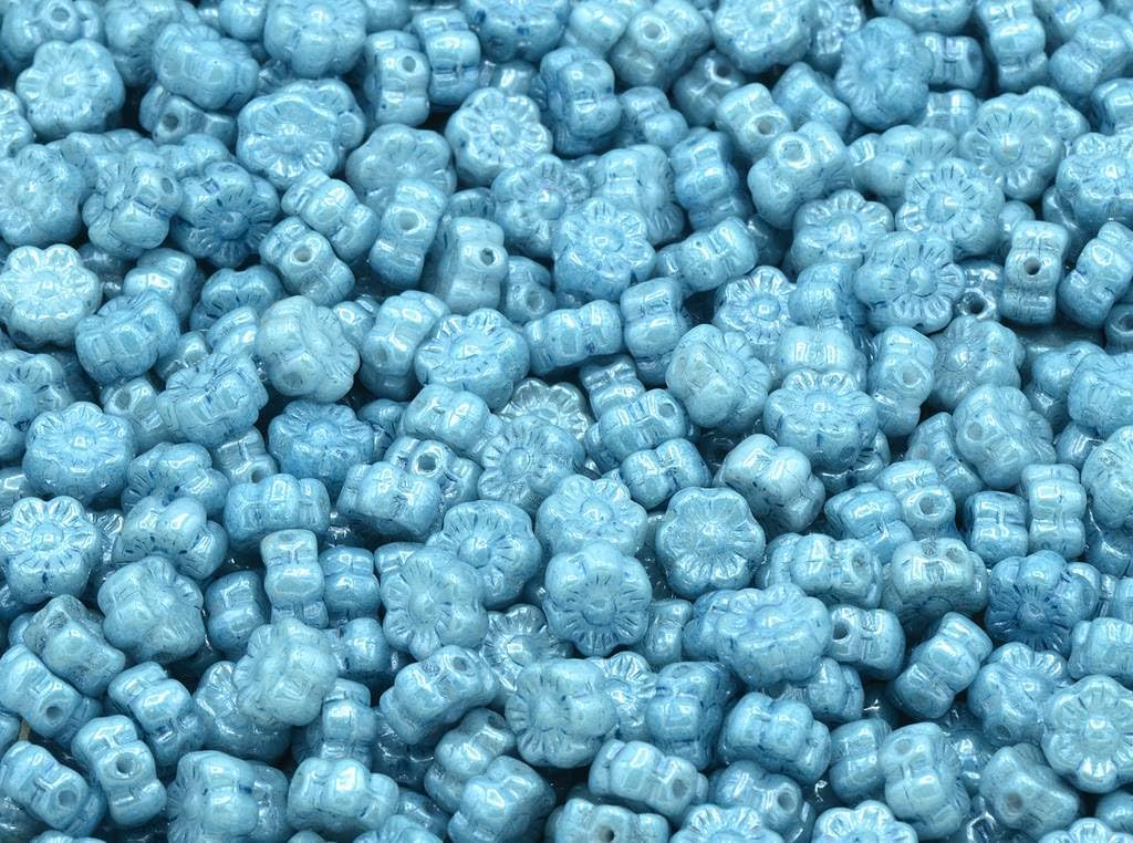 300pcs Flower Beads, Opaque Red Vega Iris (93200-15781), Glass, Czech Republic (0.31 inches)